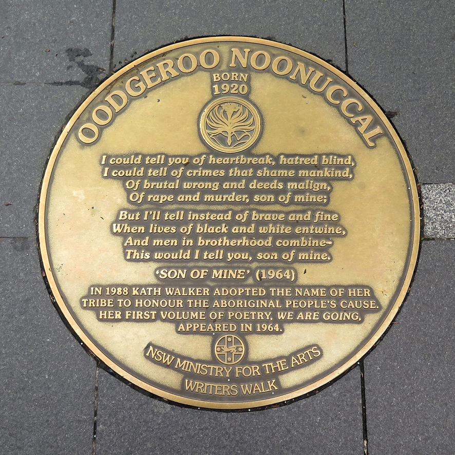 Oodgeroo Noonuccal plaque in Sydney Writers Walk [Image]. (n.d.). https://commons.wikimedia.org/wiki/File:Oodgeroo_Noonuccal_plaque_in_Sydney_Writer_Walk.jpg
