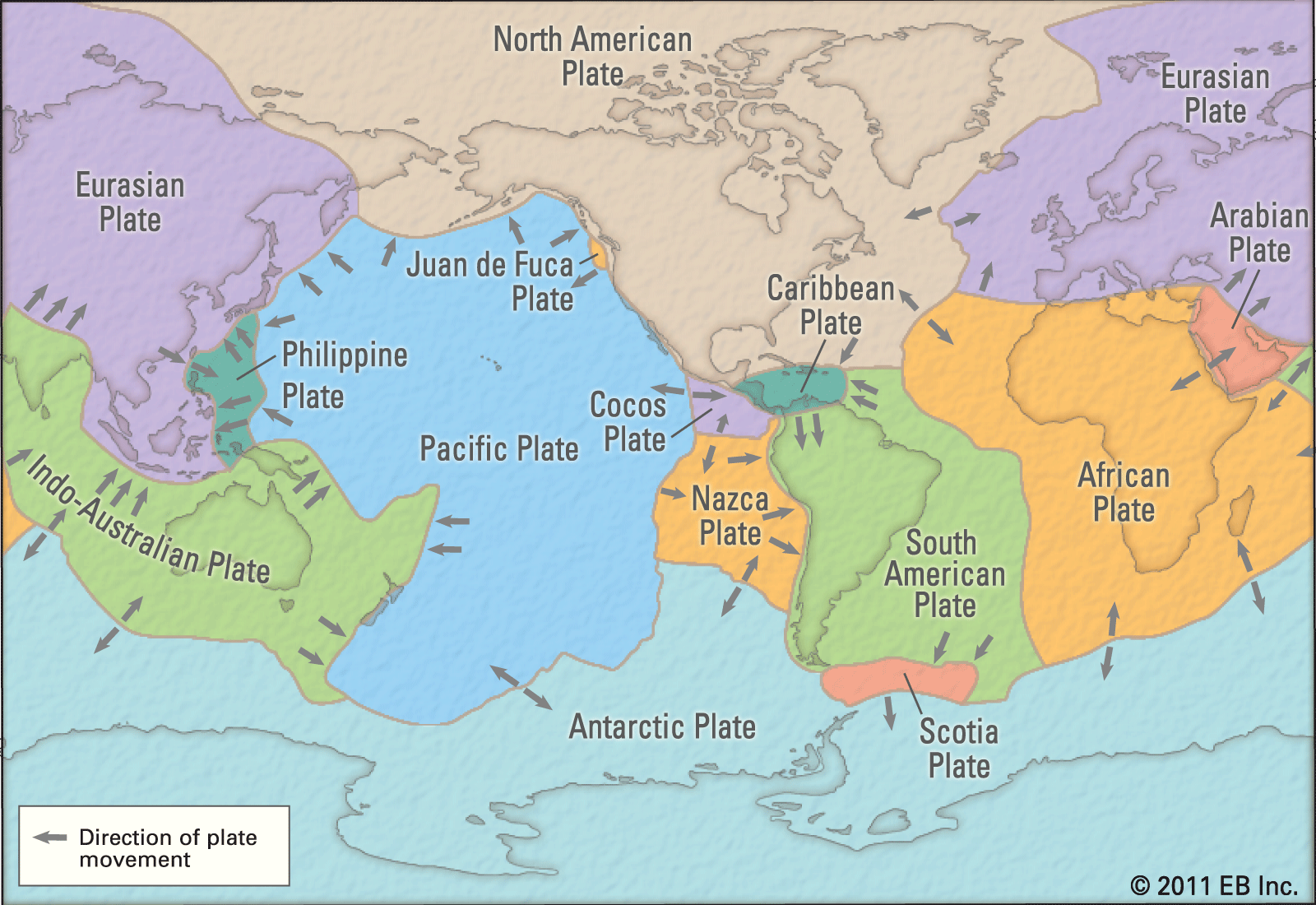 Earth’s tectonic plates. [Image]. (n.d.). In Encyclopædia Britannica. Retrieved from Britannica School database.